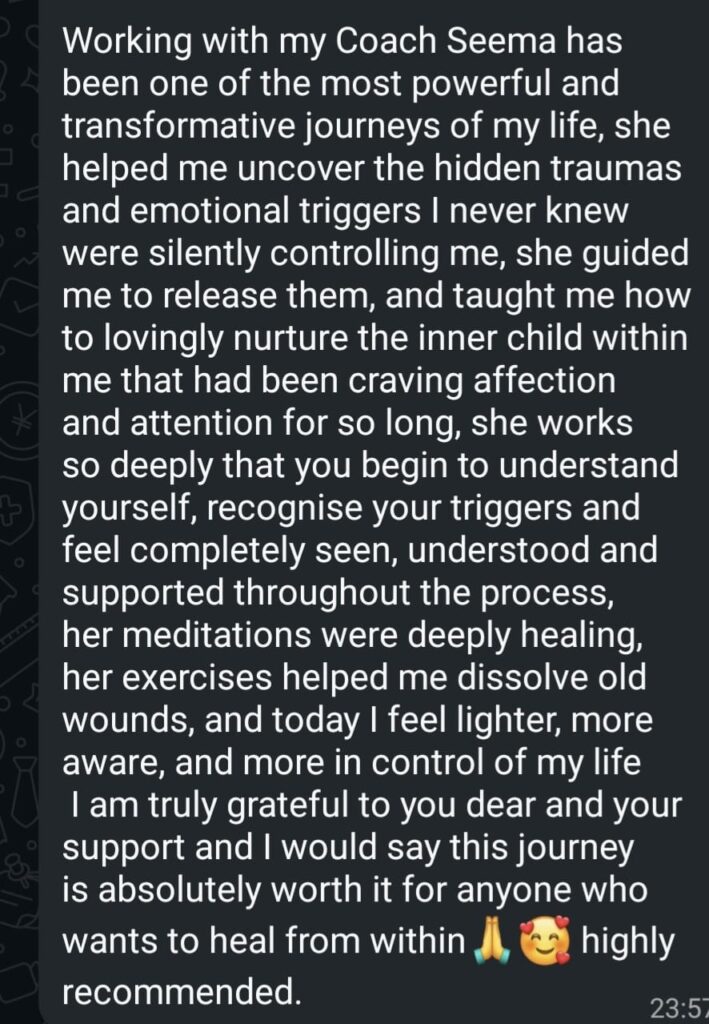 Today I dont just teach healing – I embody it. And through this program, I guide you to do the same with compassion, structure and deep emotional integrity.